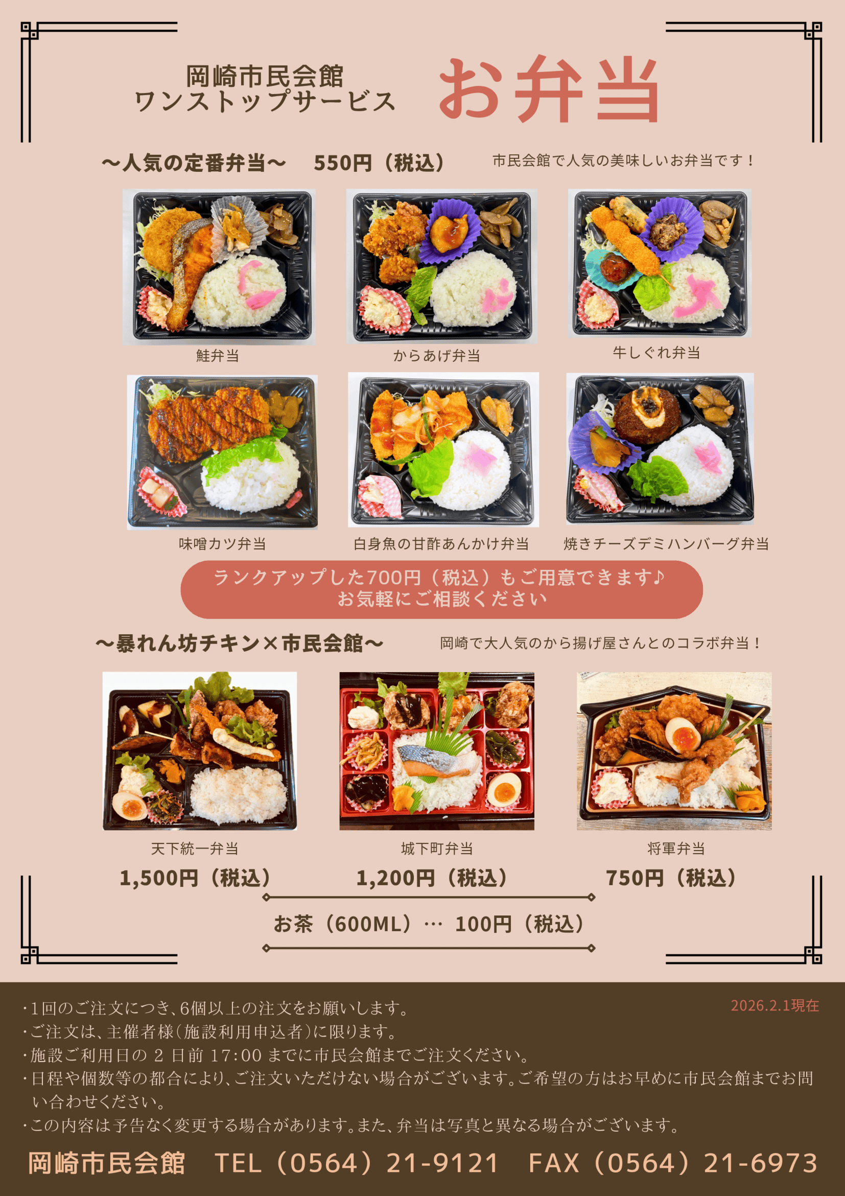 新しい価格帯のお弁当もございますので、まずはお気軽に市民会館までお問い合わせください。